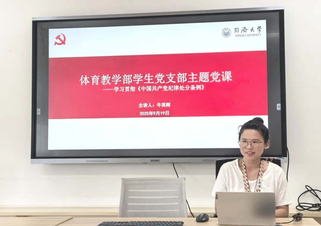 9月19日,体育教学部学生党支部召开全体党员会议,围绕加强理论学习教育、发扬党的优良传统、发挥党员先锋模范作用等主题开展了深入学习和交流。会议由党支部副书记马童昕主持,体育教学部党委副书记叶宇列席支部活动。