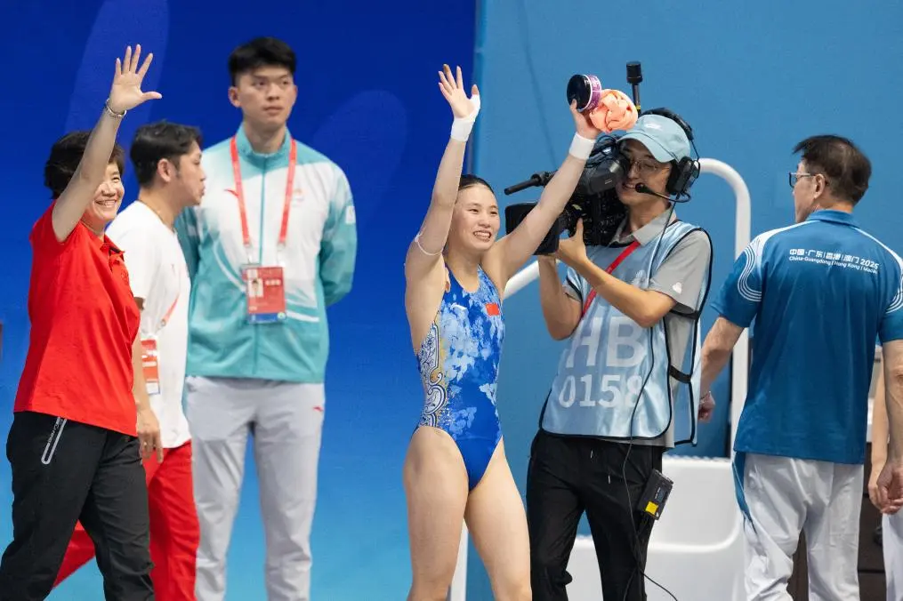 2024级体育教学部本科生陈芋汐完美诠释 “跳台女王” 实力,先与掌敏洁搭档斩获女子双人10米跳台金牌,再以出色发挥拿下女子单人10米跳台冠军,实现本届全运会双金目标。