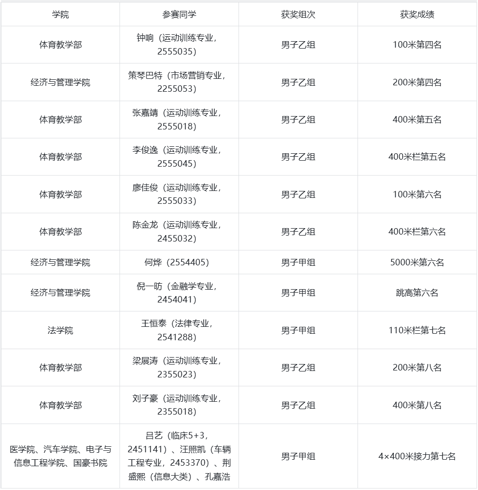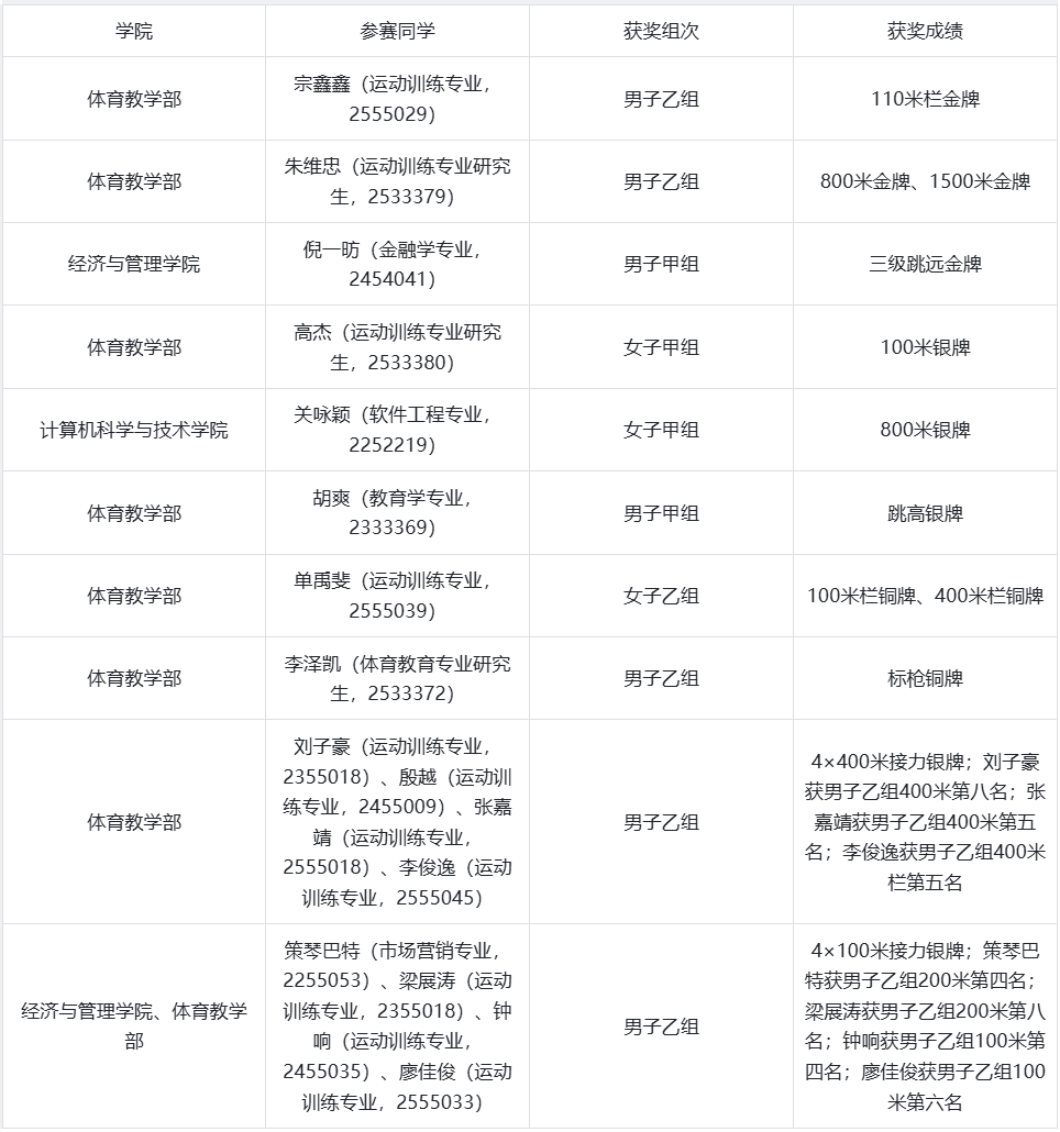 对以上获奖的运动员表示热烈祝贺!